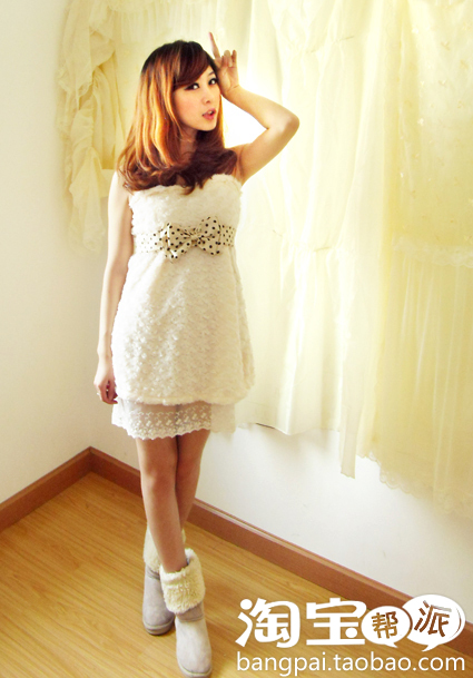 日式 蝴蝶结蕾丝 末胸群群 好可爱的说