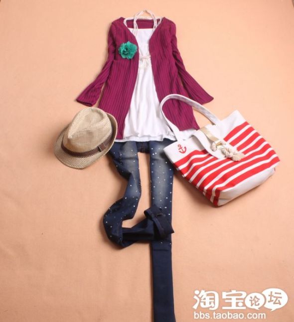 长款的针织衫开衫配上暗色带亮点的小脚裤.再配上一朵胸花.一个帽子.显示的更潮人范.显示出来秋天的色彩斑斓.