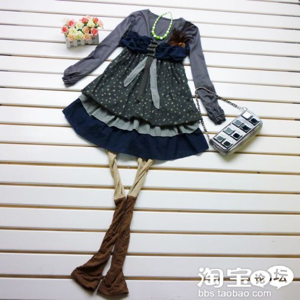 独特设计长袖印花层层连衣裙衫 .更适合甜美女孩.