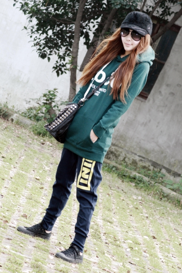戴起来也很有冬天的感觉,很酷的,带帽的长袖卫衣,