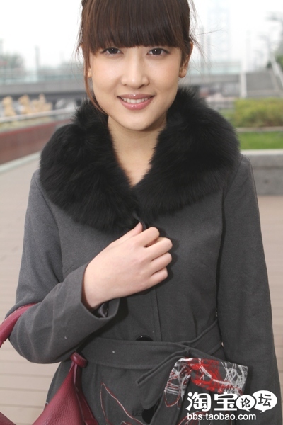 朱朱配了狐狸毛领 蝴蝶结羊毛大衣