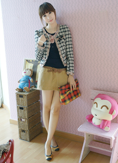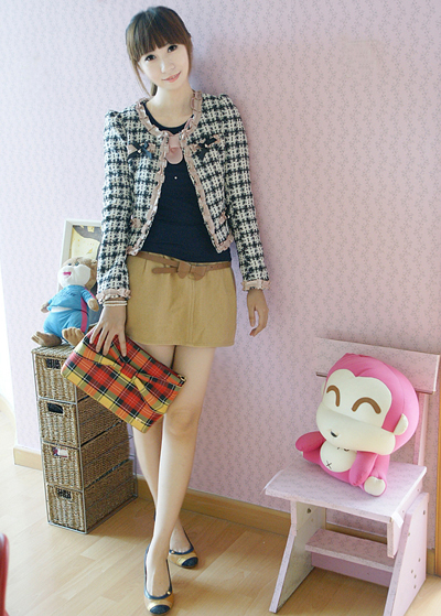 充满了OL风情的短外套+短裙,优雅与气质并存,是OL冬日必备的单品。