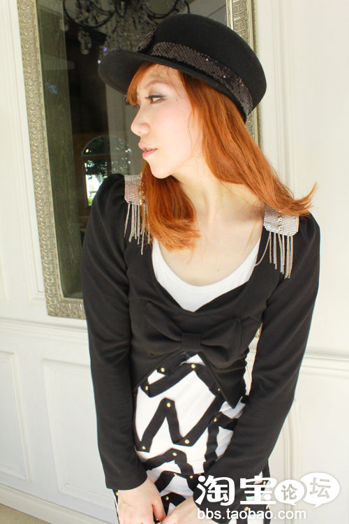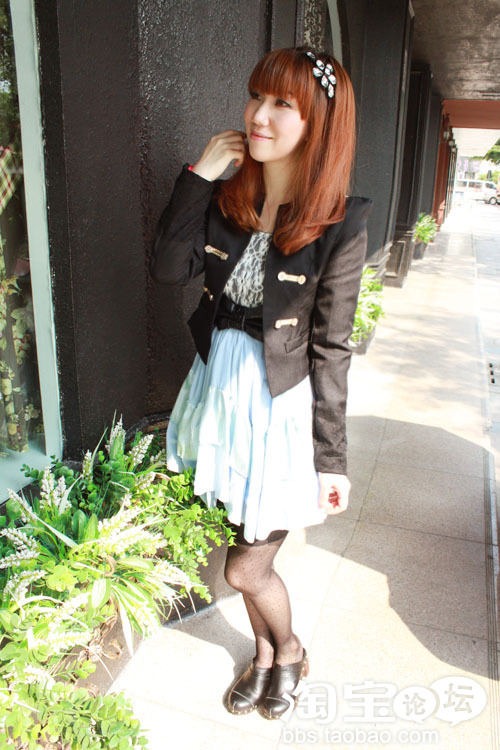 黑白的搭配非常的舒服,淡淡的妆容衬托剔透的肌肤,