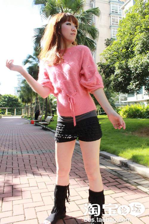 1、点点珍珠装饰兔毛删+木耳边打底裤