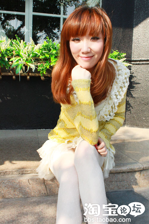 3、黄色蕾丝边开衫+米色蕾丝裙