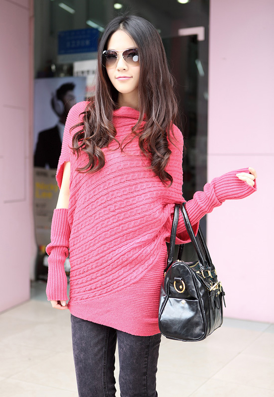 蝙蝠袖的针织衫 露出一边的锁骨