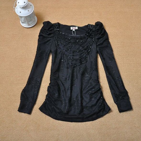 夏天里穿得最多的就是T恤,至于到了秋天,T恤的袖子由短变长,不变的依然是那份简约的美丽和方便舒适;今天就让爱美网的小编给你推荐让你今秋美丽无比的长袖T恤,美丽同样可以很简约哦!充满艺术风格的图案,让你看上去极具气质,充满文艺女青年的风范,而百搭的白色,无论配裙还是配牛仔裤都非常方便黑色的露肩长袖T恤,简单的抓皱和立体剪裁,让你看上去充满女人味,十分性感迷人