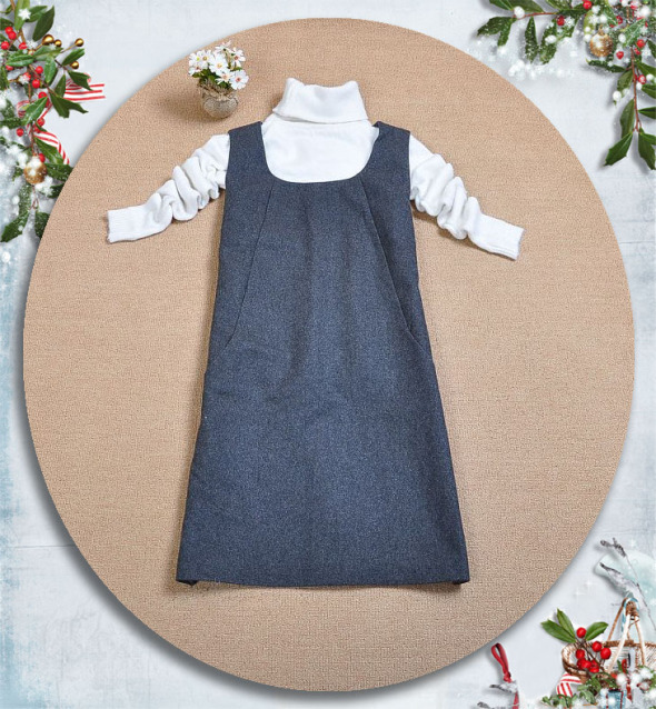 此件美衣為呢料背心裙,建议内搭高领T恤或毛衣哦~