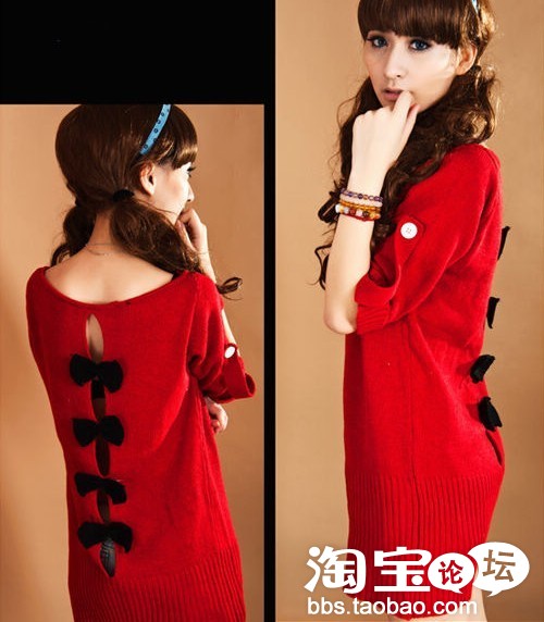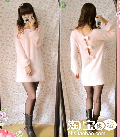 韩版美~**露背~超可爱蝴蝶结毛衣~