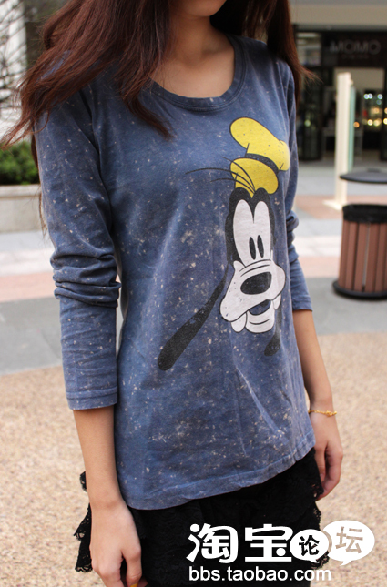 红蓝的搭配显得瞩目但又不艳俗,迪士尼卡通图案的T恤带来了美好的童真~