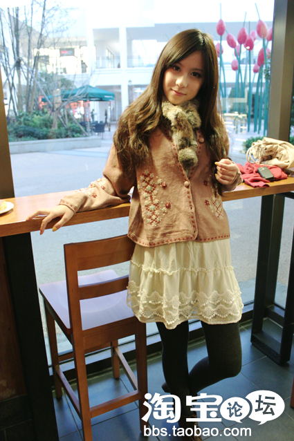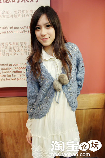 超级田园风来了~~~短款的钩花开衫和雪纺连衣裙是经典搭配