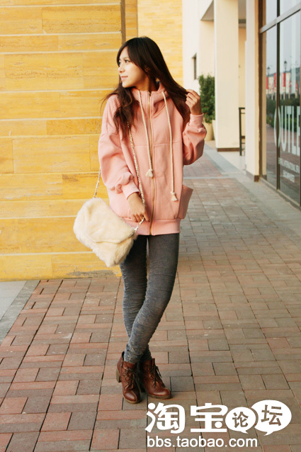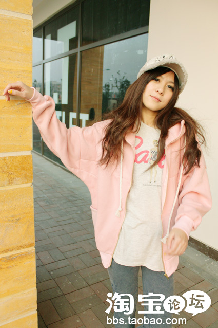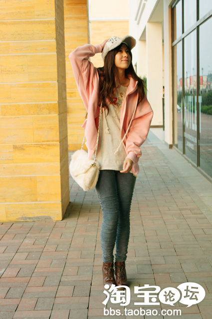 冬日的阳光暖暖的,懒懒的,一件粉嫩的卫衣就能把你给甜美的气质提炼出来了