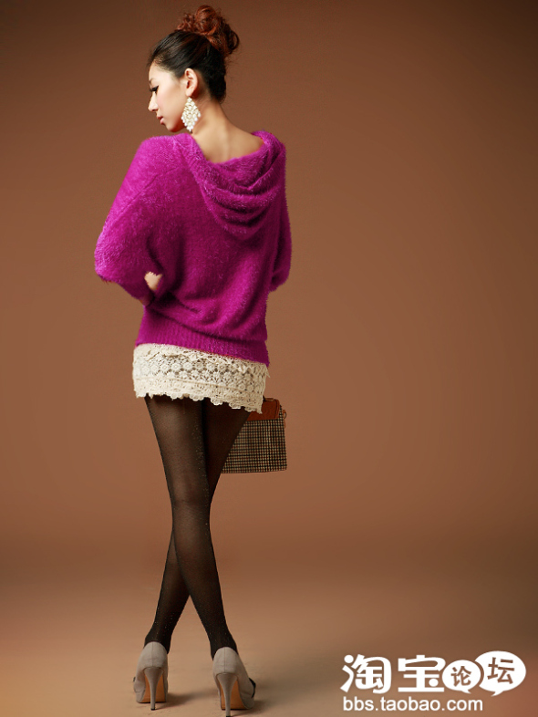 丝滑手感长毛绒蝙蝠袖连帽毛衣