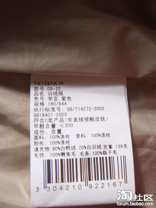 今年的羽绒服卖的火爆,依红品牌 英文商标是:E.HONG ,大家看看这个牌子挂羊头卖狗肉的真相,先看看图片上领子和吊牌上的商标是所谓的依红 英文名 E.HONG 再看看 同一件衣服内衬的牌子标志却又是:TULLE&LIP 哈哈,原来是贴牌时工人不细心漏减掉衣服本身的牌子标志呢,大家购买衣服时可得记住这个牌子了,TULLE&LIP 这个牌子的价格三百 多元, E.HONG 这个牌子的价格是六百多元,细心的MM请仔细看好了,不要出了六七百元买来的却是三百多的衣服