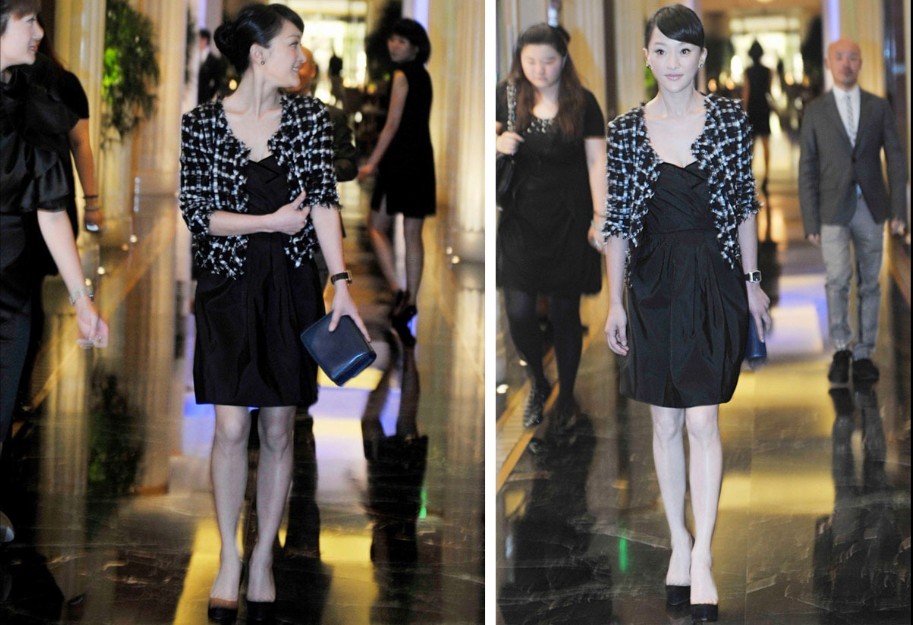 周迅:“CHANEL外套搭配抹胸小黑裙是永远不会出错的搭法吧?!而这一套本身也非常适合我。”