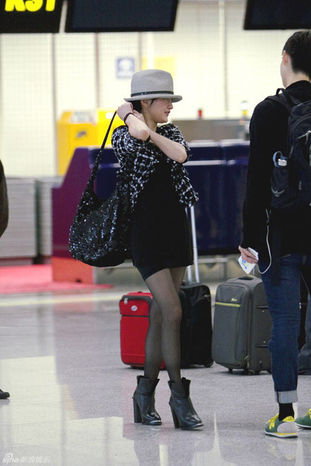 周迅热衷于黑灰搭配,显得利落时髦。迷你短裙能够减少身材的娇小感。