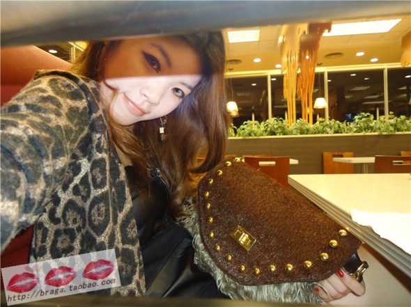 这是我最新败来的歐美奢華氣質麂皮皮草包包哦