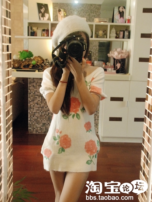 LENA在杂志中多次穿的兔毛花朵毛衣