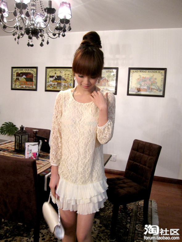 肩头的蕾丝边也是很复古的一个小细节哦~