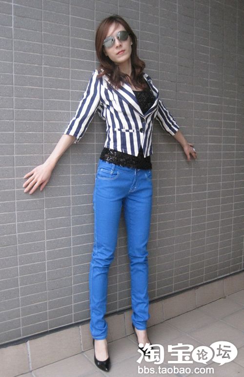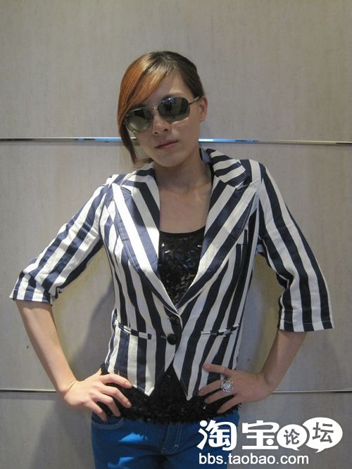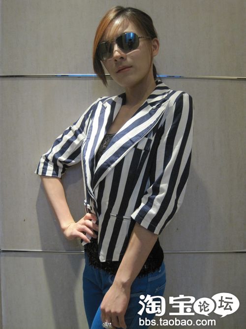 修身的剪裁当然少不了,否则在条纹的熏陶下,容易显得胖胖