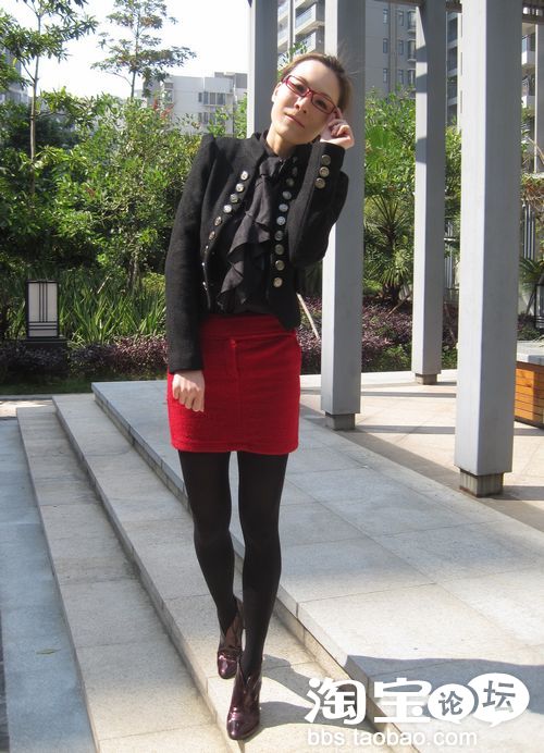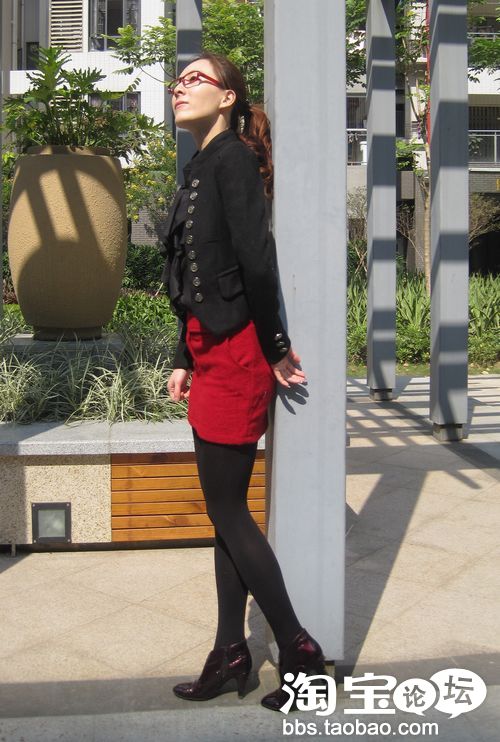 红黑一直是绝配,阳光下的黑色外套显得格外时尚