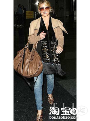秋冬季节包包的选择可以参考Kate Hudson,她的流苏红色大背包很惹眼,也让人在冬季的寒冷中感受到无比的热情和温暖。