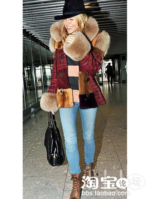 毛茸茸的皮草是不是让你爱不释手呢,Blake Lively在冬天穿上这样的毛领大衣既不显得臃肿还十分时尚保暖,何乐而不为呢?米勒的黑色宽檐帽也为她增加了一份嘻哈的风范。