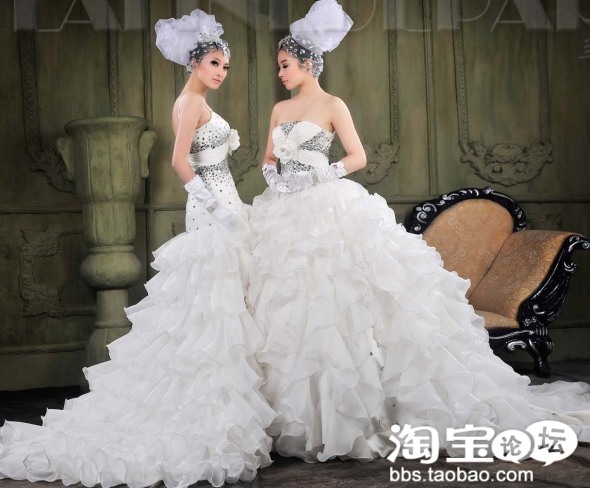 一般来说裙摆分:鱼尾、A型、抓皱、宫廷式、大拖尾这些。裙摆的好坏决定了新娘身材的比例。特别是鱼尾婚纱,*部和裙摆外翻部分的线条很重要,处理得好会让新娘显得很高挑。
