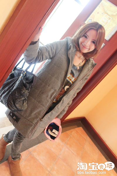 里头是厚袄子 外头又是灰色的超质感的呢子大衣