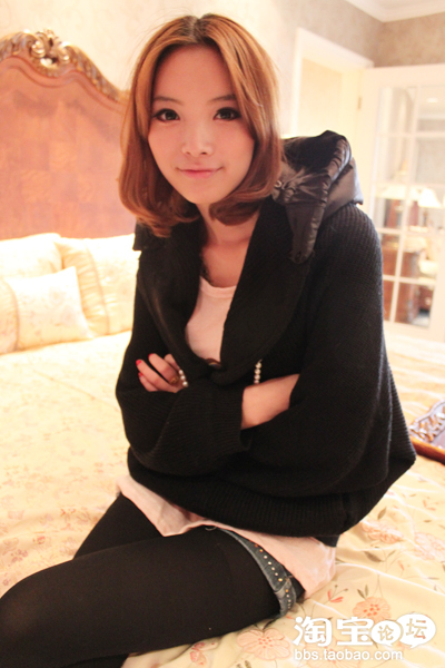 大摆 大口袋 的 扎实毛衣 后面的棉袄领子特别有感觉