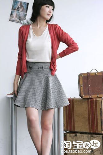 上半身挑选开衫的搭配,下半身用百褶裙来弱化开衫的职业感,绝对是适合OL的混搭方法