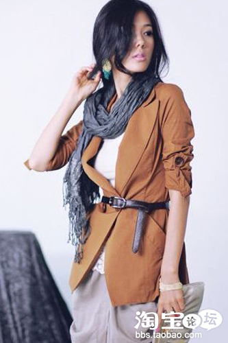 在开衫外系上细腰带增添休闲的感觉,让人更觉亲近的同时秀出你的小蛮腰