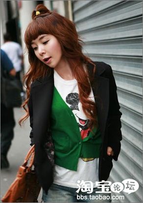 鲜艳的绿色针织开衫,无论外穿还是内搭都非常抢眼。搭配今年超流行的超短热裤,充满俏皮感。黑色打底裤的加入,平衡了绿色的跳跃感。