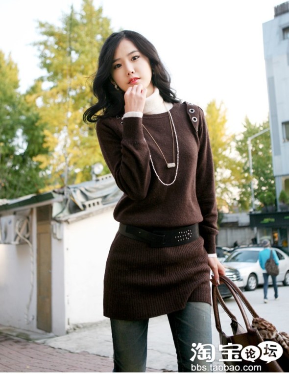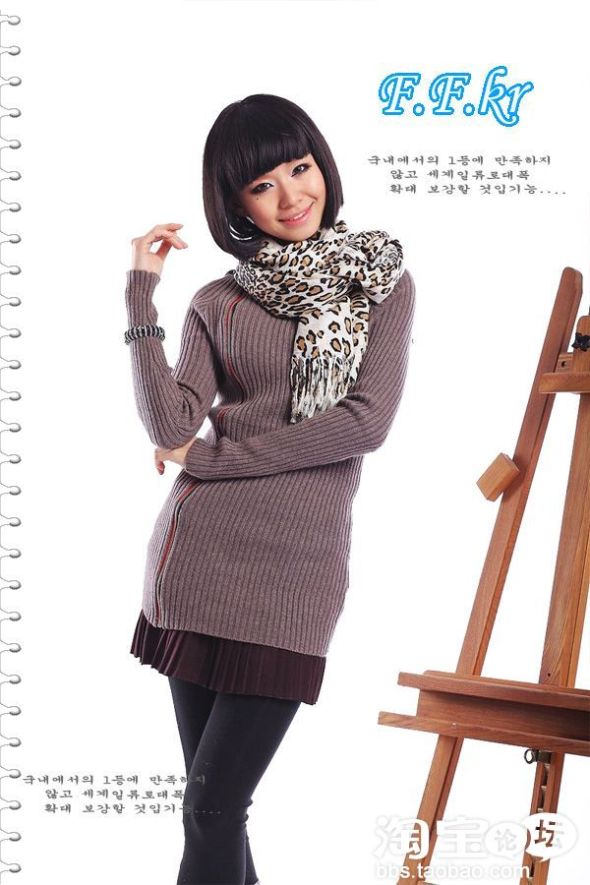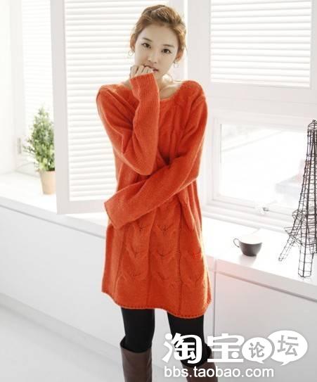 ffkr韩国品牌现货 2010秋新款 肩绣花长款毛衣FS-10-21128