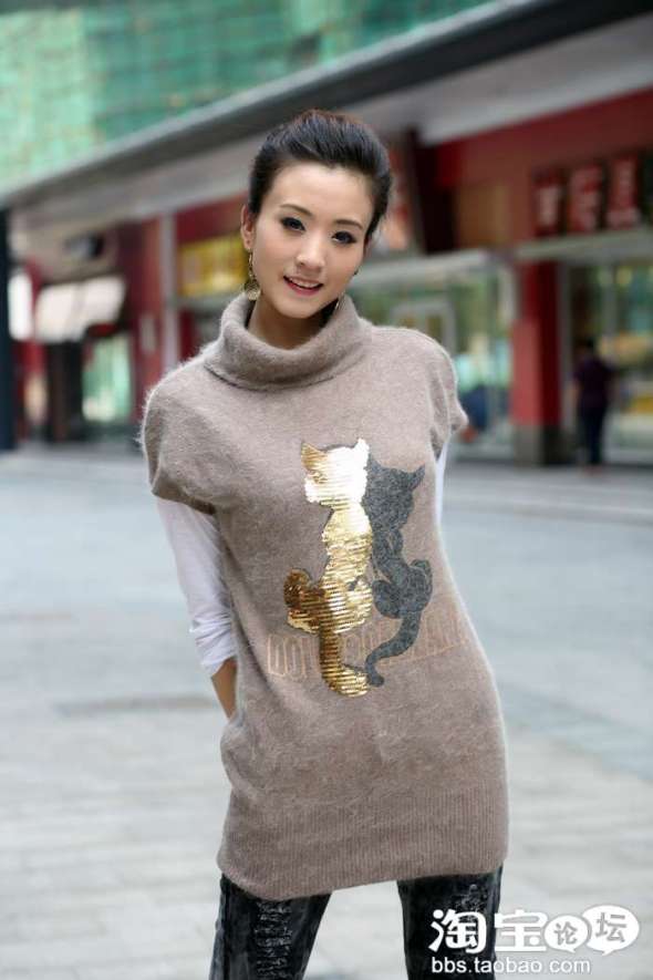 秋冬可是针织服装争斗奇艳的时候,衣服的款式很简单 单上面的彩带装饰非有特色,使人眼前一亮!