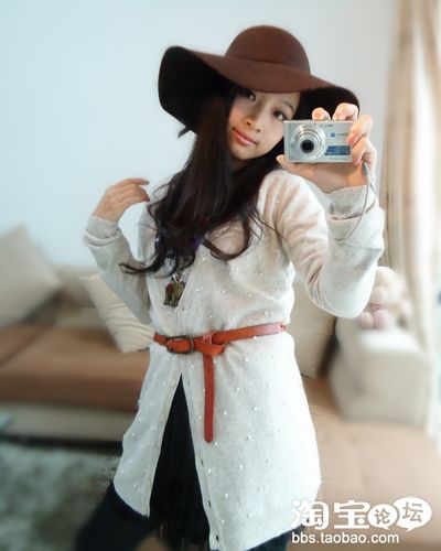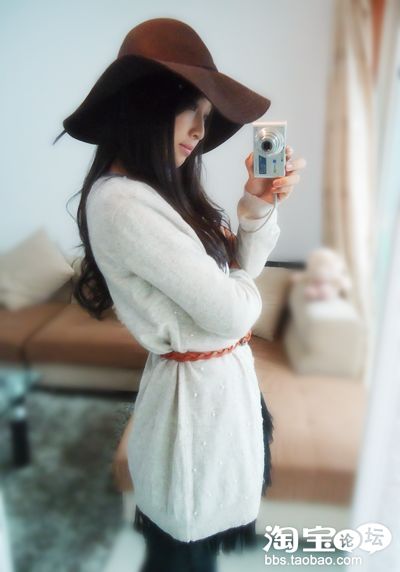 大檐帽+珍珠长开衫+再配上一条腰带 既女人又优雅的英伦风来了~