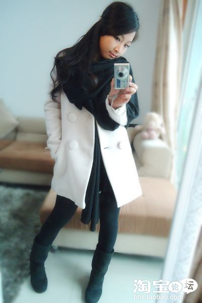 浅色的厚厚的棉服也是很必要的 大大的围巾带上立刻很大牌了~