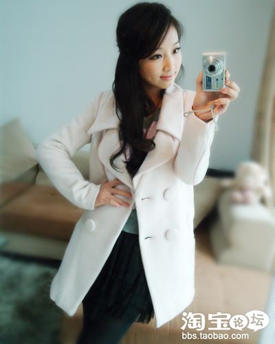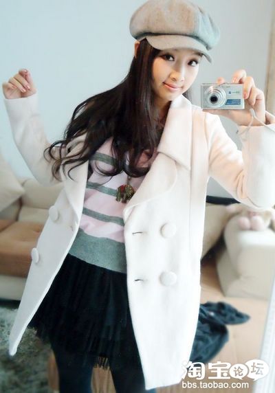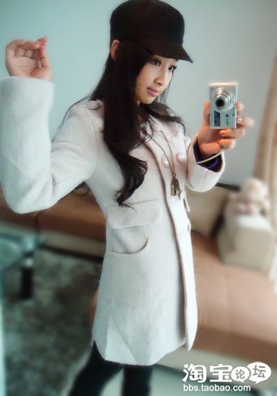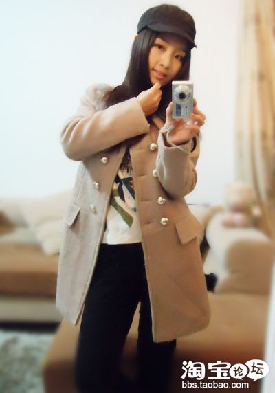 这款浅色大衣很喜欢,领子有点像小西装领,又有很大牌的感觉,戴上帽子感觉也还不错