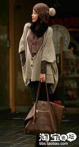 宽大的开衫毛衣会有点随意,里面搭配上一件同色系的高领衫就很有职业的干练感觉,不过难免觉得过于老气,所以下身搭配紧身的铅笔裤、毛球小帽,可以让你干练中透露亲切的感觉。