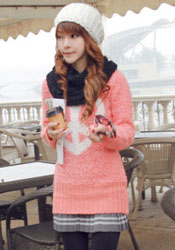 达人经验:长款毛衣可以遮掩大PP,露锁骨的圆领看起来迷人不少,呈现最美搭配