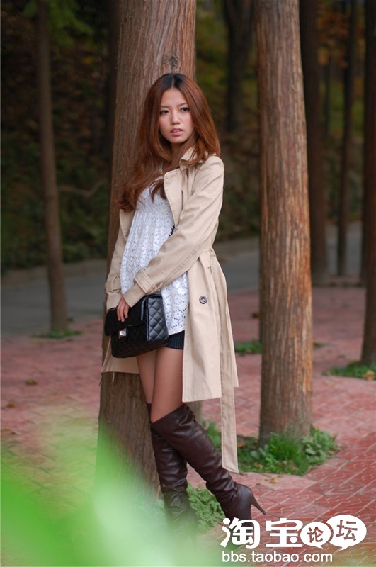 搭配3甜美蕾丝上衣+短裤+风衣+过膝靴