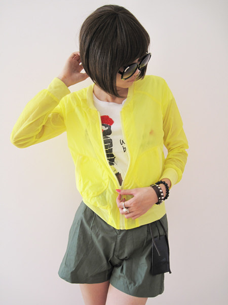NO.4黄色防晒衣+小红帽可爱T恤+军绿色休闲短裤
