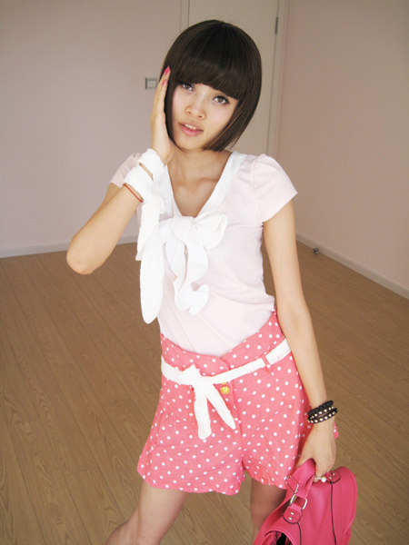 颜色和圆点图案的结合,很清爽,蕾丝的腰带更显可爱。