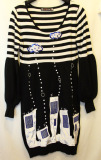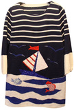 欧洲原单条订珠刺绣纹帆船鱼羊毛连衣裙长T