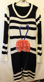 Tsumori原单天鹅公主王子玫瑰花朵条纹针织长T长袖连衣裙