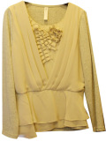 韩国原单正面层层雪纺花朵高贵淑女羊绒打底衫