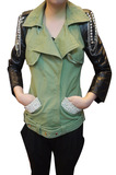 D*i*o*r原单帅气皮袖肩订珠中军绿色长款风衣可拆