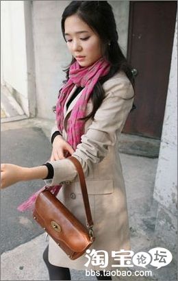 干练的风衣,也可以搭配一条棉质的红色围巾,记住不要随意垂挂,将围巾两头自然垂下,丝毫不臃肿,非常女人味。
