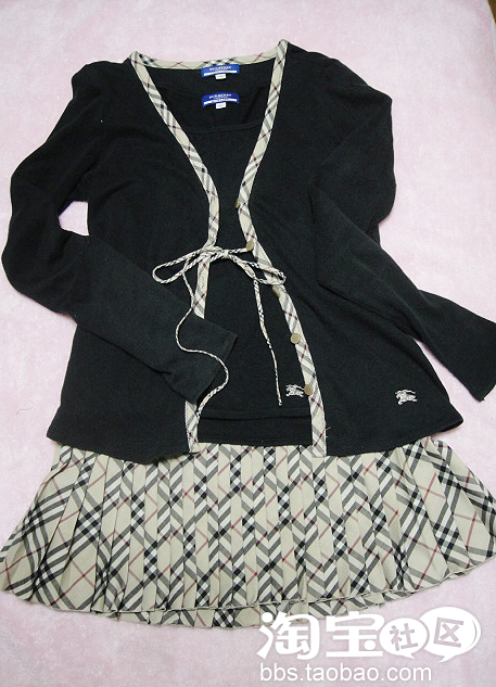 此款BLUE BURBERRY的短袖T恤,开衫外套,超短百褶裙是爱纱的经典淑女装,高贵的英伦风米色格子与黑色的完美搭配,任何约会,你都是心仪男生目光的焦点哦!爱纱败了短袖T恤1200元,开山外套1600元,超短百褶裙2200元