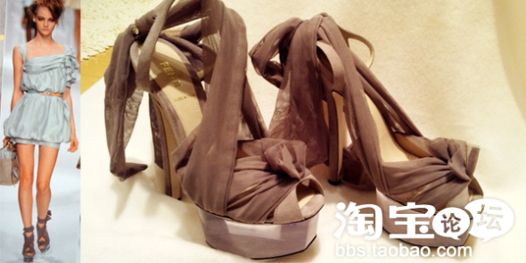此款BCBGMAXAZRIA的2008年杂志款斜肩小洋装搭配Christian Louboutin的2009年走秀款鱼嘴凉鞋,一共败了35000元。